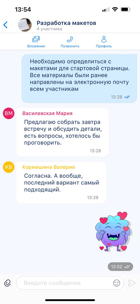 Работа с вложениями: отправка файлов любых форматов, редактирование документов прямо в чате