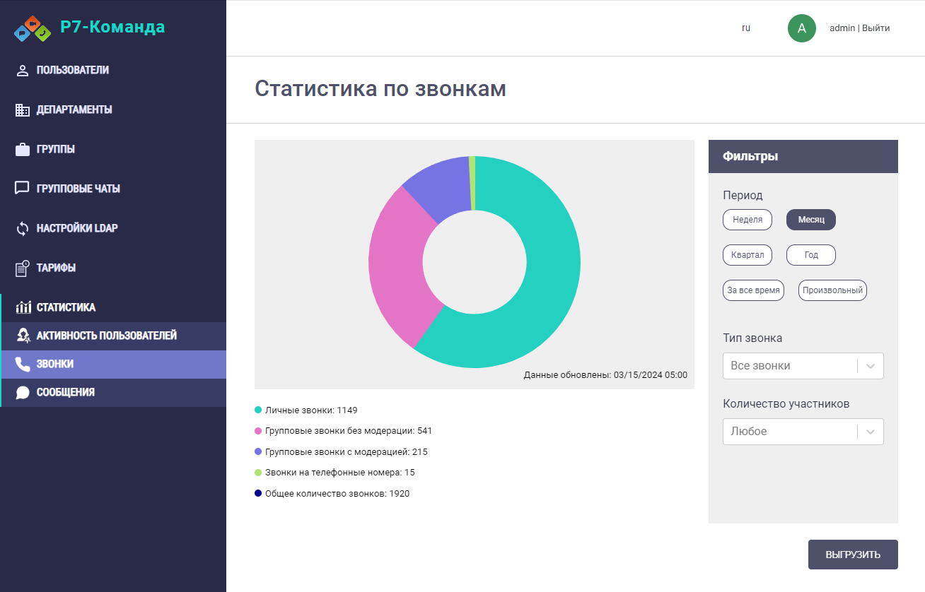Статистика по сообщениям и звонкам, отчёты